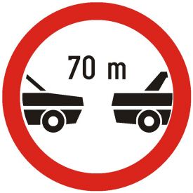 Indicator de interzicere sau restrictie C21 interzis autovehiculelor de a circula fara a mentine intre ele un interval de cel putin 600 mm folie reflectorizanta clasa 1 otel vopsit