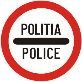 Indicator de interzicere sau restrictie C32 control politie 600 mm folie reflectorizanta clasa 1 otel vopsit