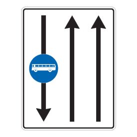 Banda de circulatie rezervata autovehiculelor de transport public de persoane F28, indicator de orientare