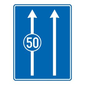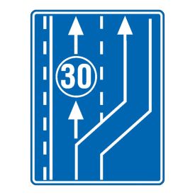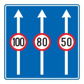 Limite de viteza pentru diferite benzi de circulatie F27, indicator de orientare