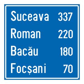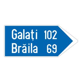 Confirmarea directiei de mers spre localitati mai importante si distantele pana la acestea F48, indicator de orientare