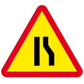 Indicator de avertizare A11 drum ingustat pe partea stanga 700 mm folie reflectorizanta clasa 1 otel vopsit