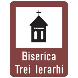 Indicator de informare turistica T4 biserica 650x500 mm folie reflectorizanta clasa 1 otel vopsit