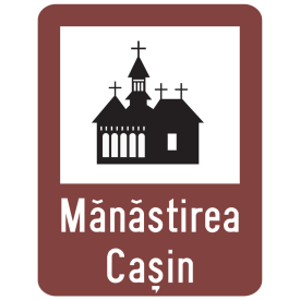 Indicator de informare turistica T5 Manastire 650x500 mm folie reflectorizanta clasa 1 otel vopsit