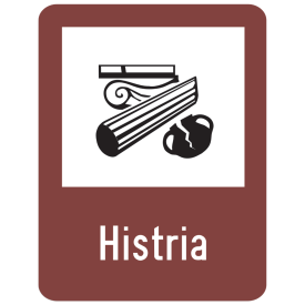 Indicator de informare turistica T2 Vestigii istorice 650x500 mm folie reflectorizanta clasa 1 otel vopsit