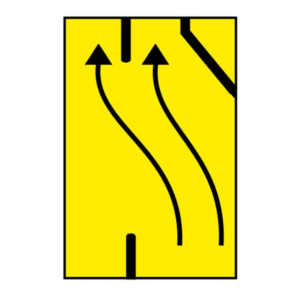 Indicatorul rutier din imaginea alăturată, se întâlnește pe sectoarele de drum unde se execută lucrări pe partea carosabilă, iar drumul prezintă o abatere temporară.