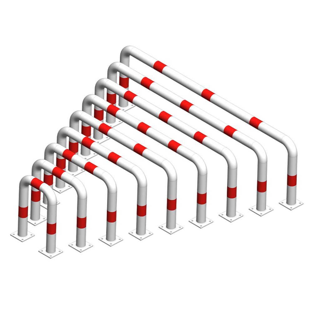 Aparatoare de protectie metalica tip arc 800x800 mm diametru 60.3 mm, alba cu benzi rosii reflectorizante