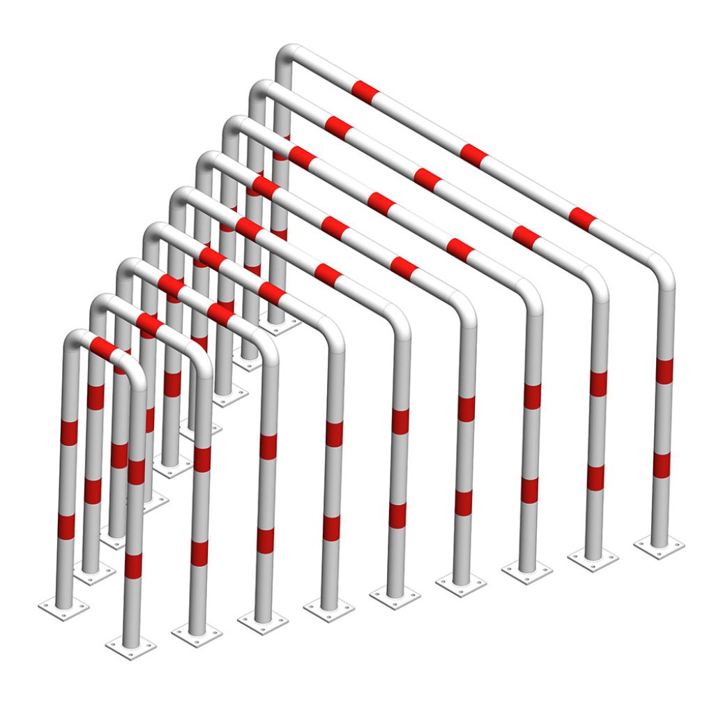 Aparatoare de protectie metalica tip arc 800x1000 mm diametru 60.3 mm, alba cu benzi rosii reflectorizante