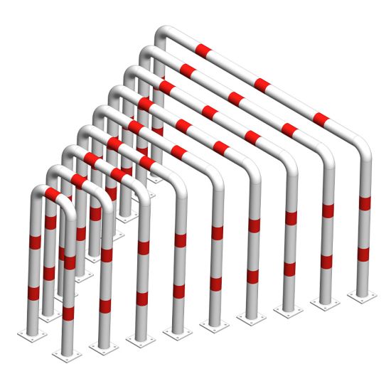 Aparatoare de protectie metalica tip arc 800x800 mm diametru 60.3 mm, alba cu benzi rosii reflectorizante