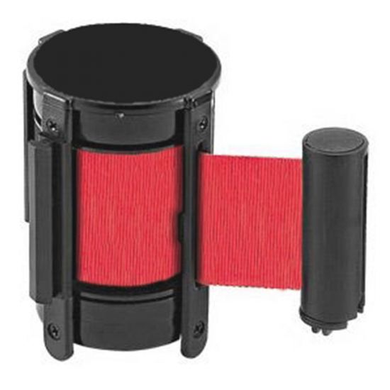 Stâlp de ghidare și delimitare, negru, cu bandă retractabilă, roșie, 2.5 metri