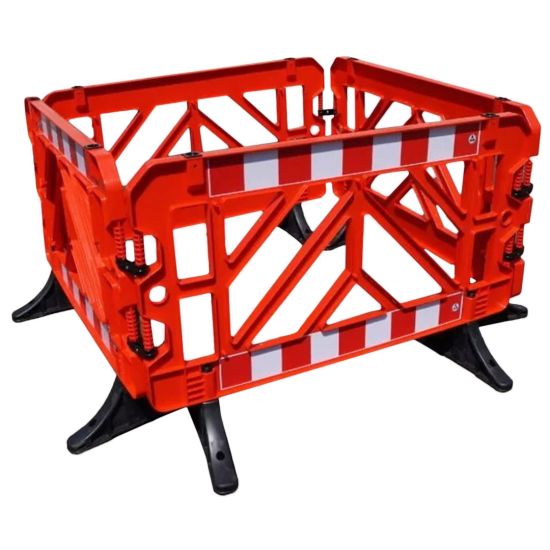 Acest gard mobil roșu este realizat din materiale rezistente la intemperii, cu finisaje durabile, astfel încât să poată fi utilizat repetat, fără riscuri de deteriorare. Designul său modular îl face ușor de depozitat și transportat, economisind timp și resurse în orice proiect.