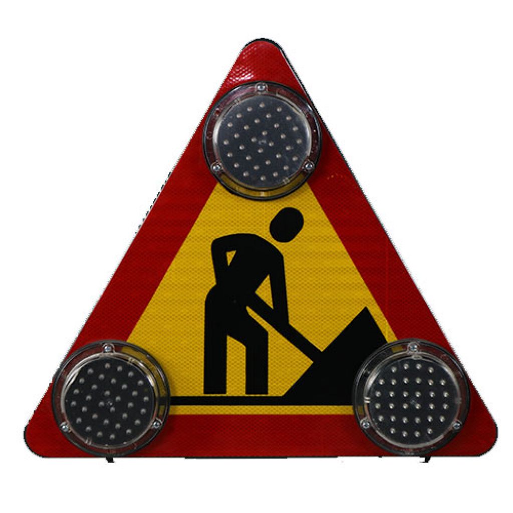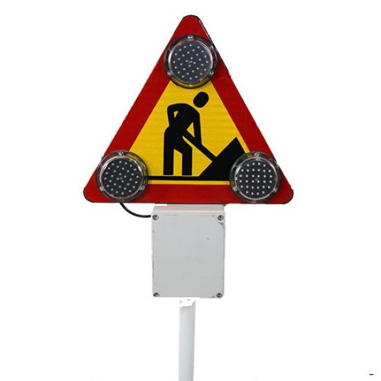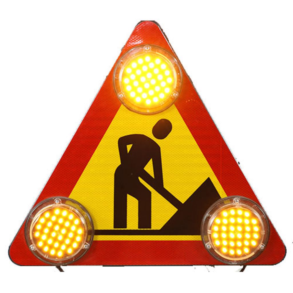 Este un indicator rutier de avertizare echipat cu lumini LED intermitente care cresc vizibilitatea semnului și avertizează șoferii asupra lucrărilor din carosabil.