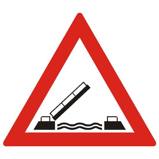 Indicator de avertizare A15 pod mobil se amplasează la 100-200 m de podul mobil. Dacă podul este ridicat, oprirea este obligatorie. Pe pod, Conducătorul auto este obligat să reducă viteza şi sunt interzise toate manevrele (depăşirea, oprirea, staţionarea, mersul înapoi, întoarcerea).