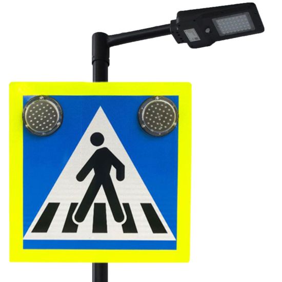 Indicator rutier Trecere de pietoni G1 cu lămpi LED și alimentare de la iluminatul public, acumulator 8 Ah