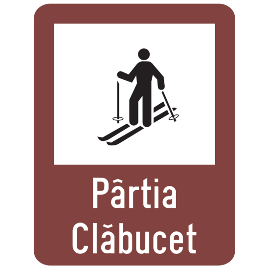 Indicator de informare turistica T9 partie schi 650x500 mm folie reflectorizanta clasa 1 otel vopsit aceste indicatoare rutiere de informare turistică, se adresează conducătorului de vehicul, informându-l că prin apropiere există o pârtie de schi.
