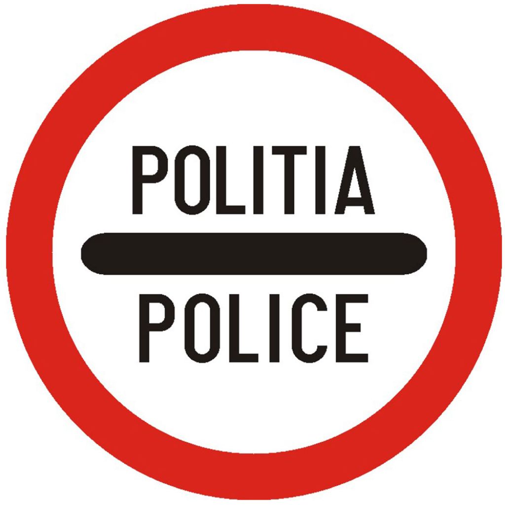 Indicator de interzicere sau restrictie C32 control politie 600 mm folie reflectorizanta clasa 1 otel vopsit este amplasat inaintea unei zone in care este prezenta politia.