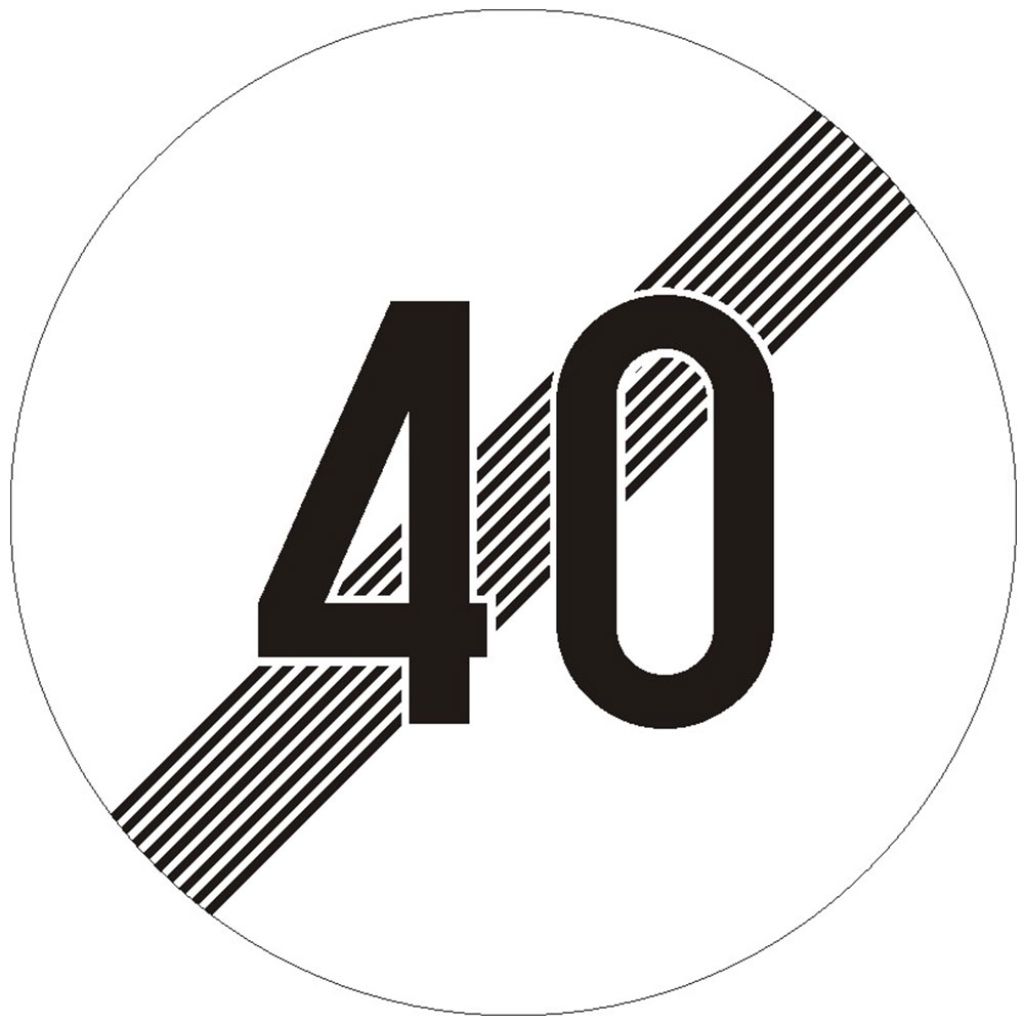 Indicator de interzicere sau restrictie C34 sfarsitul limitarii de viteza 600 mm folie reflectorizanta clasa 1 otel vopsit are rolul de a preciza sfarsitul sectorului de drum pe care era impusa limitarea de viteza.