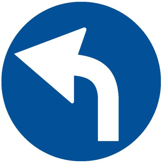 Indicator de obligare D3 obligatoriu la stanga 600 mm folie reflectorizanta clasa 1 otel vopsit se amplaseaza inaintea intrarii intr-o intersectie, obligand conducatorul auto sa vireze pe directia indicata de sageata, dupa ocolirea indicatorului. Zona de actiune a acestui indicator o constituie intersectia inaintea careia este instalat.