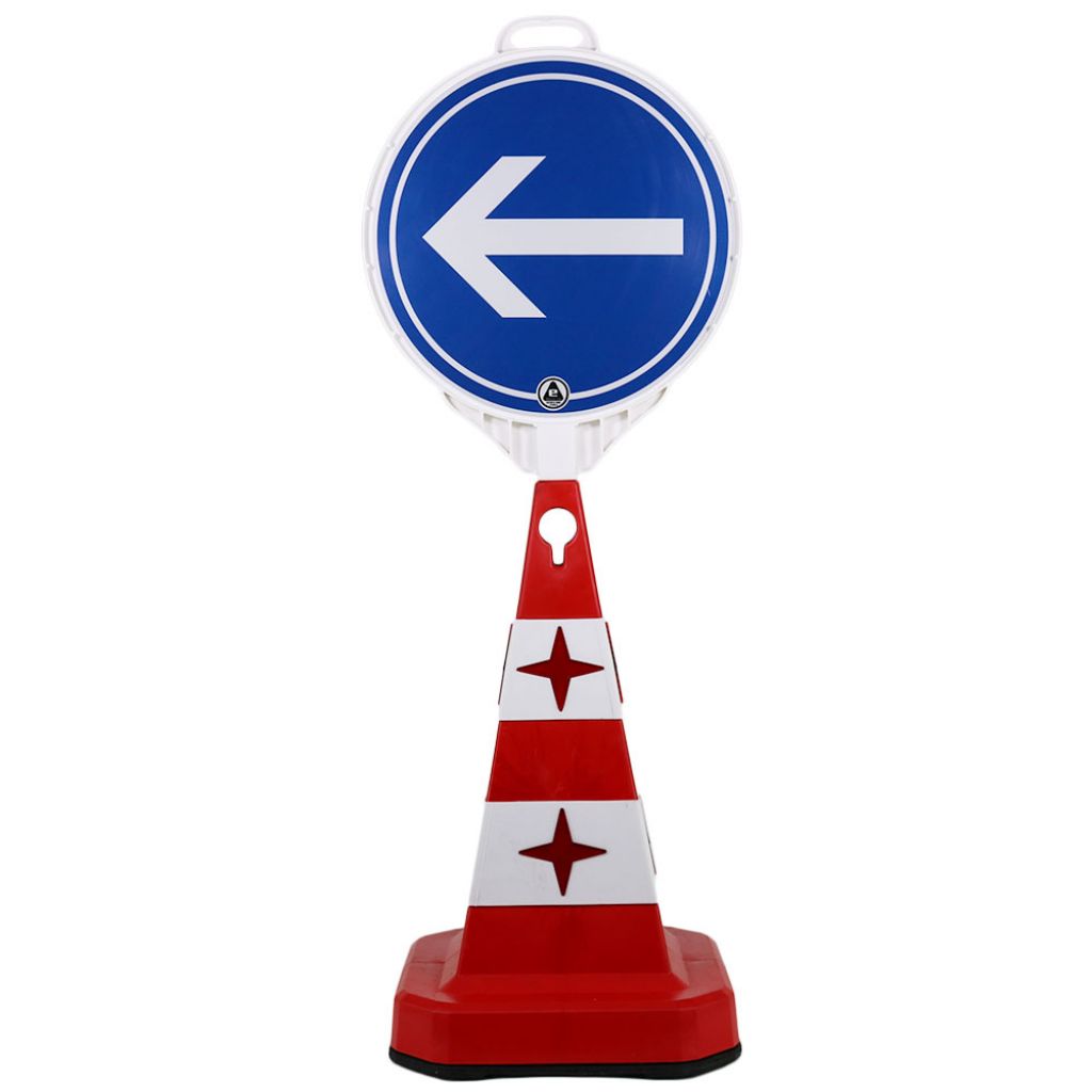 Kit format din un con rutier cu inaltime de 600 mm si un indicator din plastic pentru obligatoriu stanga/dreapta, fata-verso.