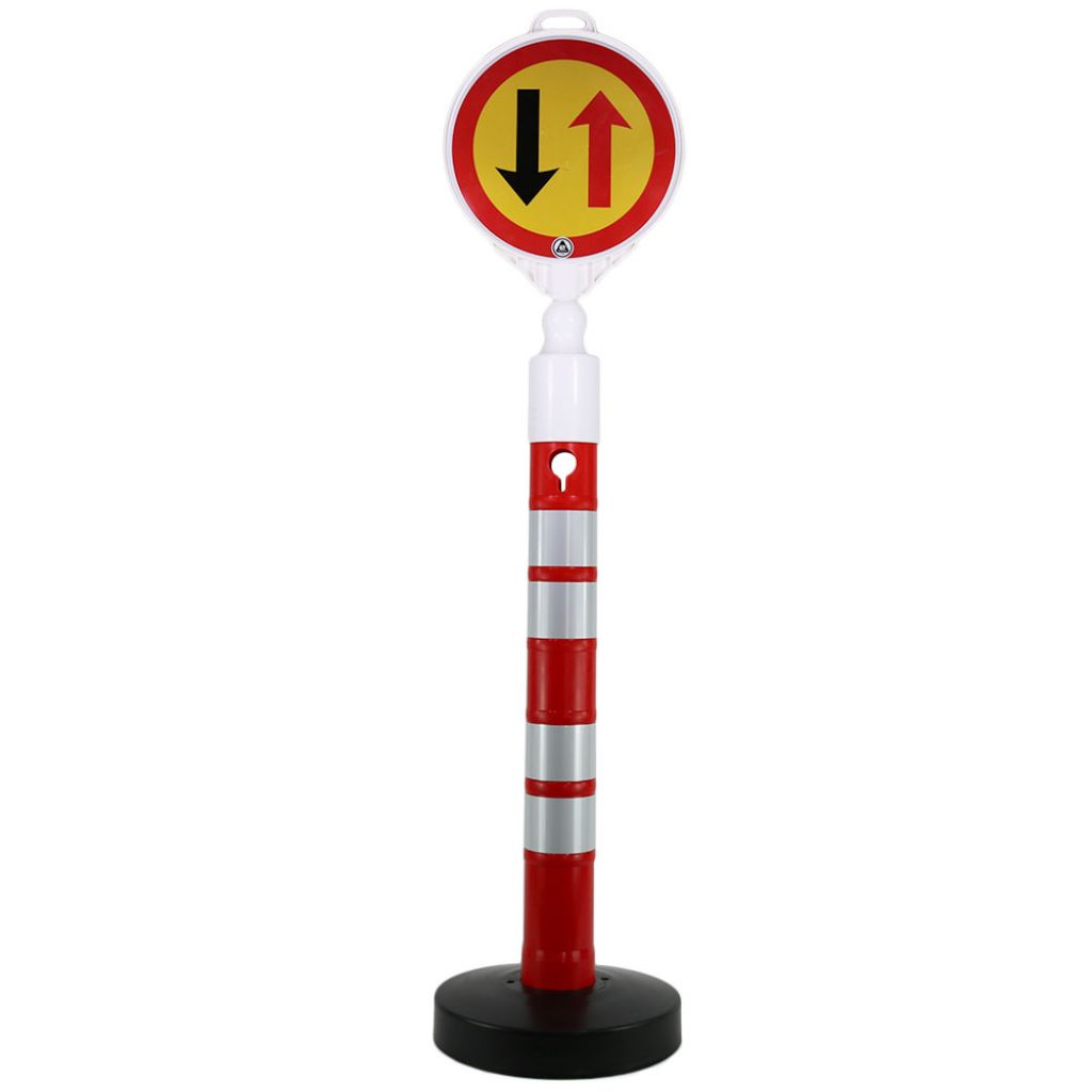 Set stâlp 1200 mm cu baza grea și indicator pentru drum îngustat pe partea stângă
