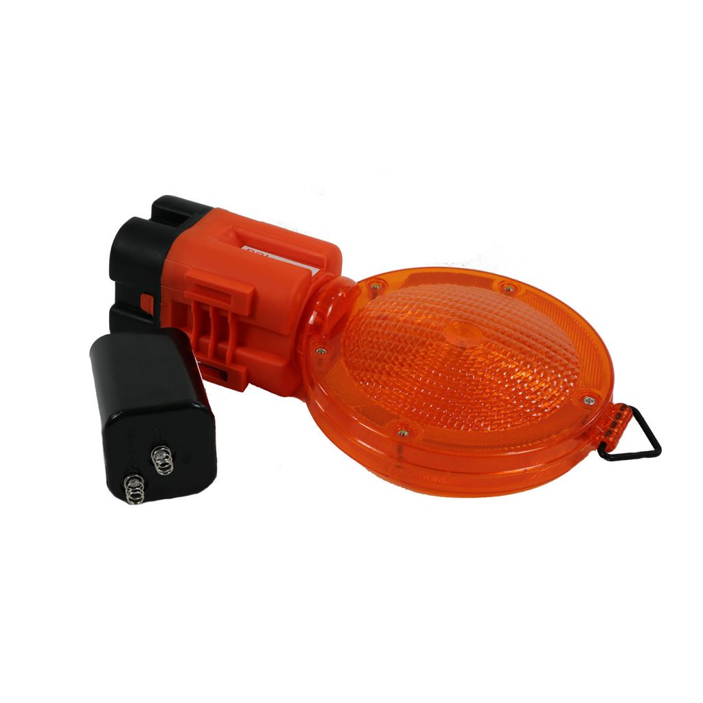 Lampa semnalizare rutieră cu lumină galbenă intermitentă care include baterie și suport antifurt