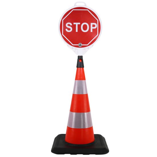 Indicatorul STOP este amplasat strategic pentru a atrage atenția imediată a conducătorilor auto, reducând riscul de ignorare a semnalizării temporare.