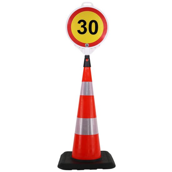 Pachetul con rutier de 900 mm cu indicator limitare de viteză 30 km/h este un sistem de semnalizare rutieră utilizat pentru controlul traficului în zone de risc, șantiere și parcări. Asigură vizibilitate ridicată zi și noapte, reducerea vitezei vehiculelor și creșterea siguranței pentru lucrători și participanții la trafic.