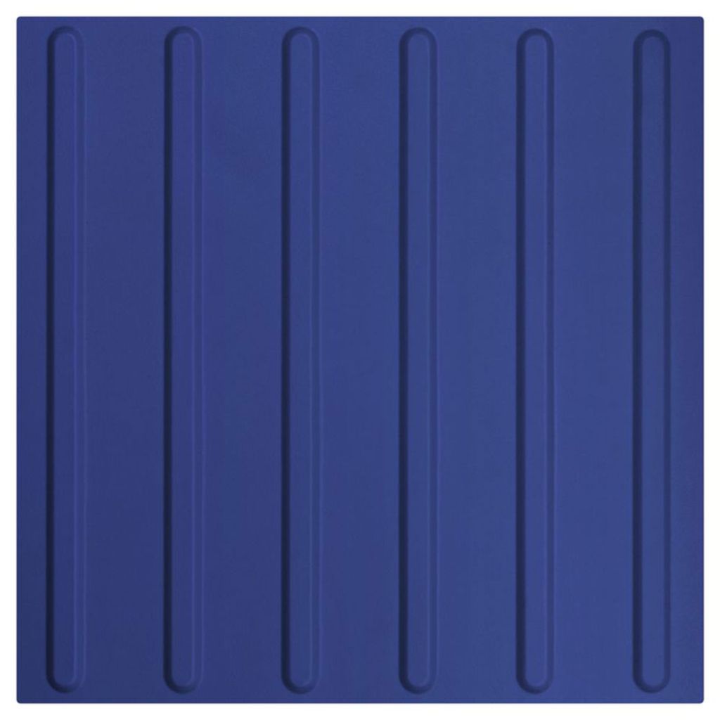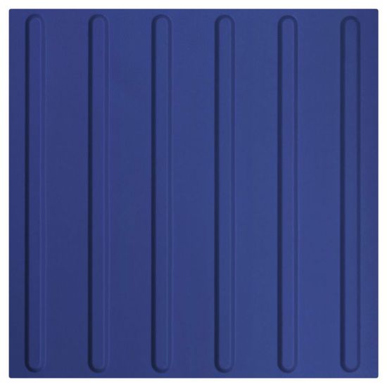 Placa tactilă de orientare pentru nevăzători albastră RAL 5005 300x300 mm asigură ghidaj sigur și vizibil, este rezistentă la intemperii și trafic intens și poate fi instalată rapid pe trotuare sau în clădiri publice.