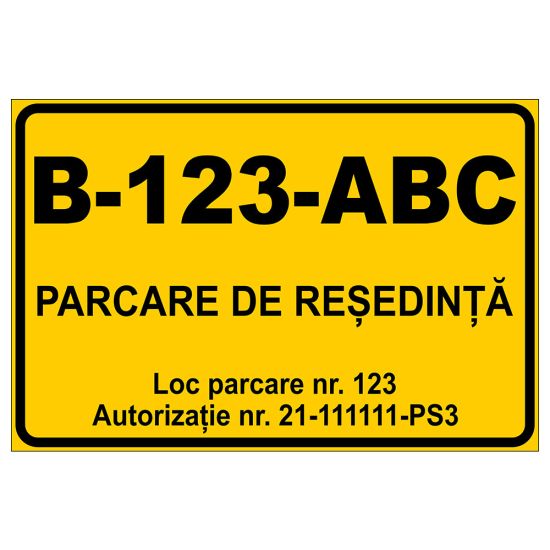 Plăcuță indicatoare parcare, autorizație număr, număr loc, număr auto, 200x300 mm, PVC, 1 mm