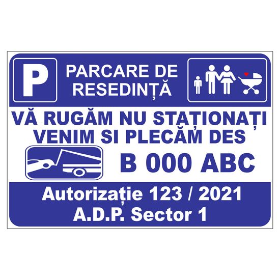 Plăcuță indicatoare parcare, autorizație număr, număr loc, număr auto, 200x300 mm, PVC, 1 mm