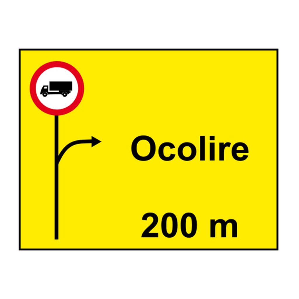 Se întâlnește pe sectoarele de drum unde se execută lucrări pe partea carosabilă. În acest caz, indicatorul rutier presemnalizează o rută ocolitoare pentru vehiculele destinate transportului de mărfuri.