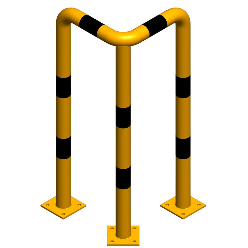 Protectie metalica pentru colt 800x800x400 mm din teava de 76.1x3 mm, zincata, benzi galbene reflectorizante