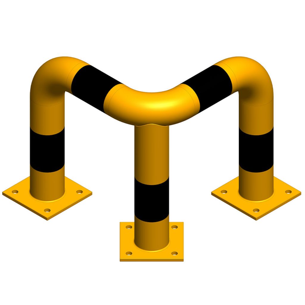 Protectie metalica pentru colt 800x800x600 mm din teava de 76.1x3 mm, zincata, benzi galbene reflectorizante