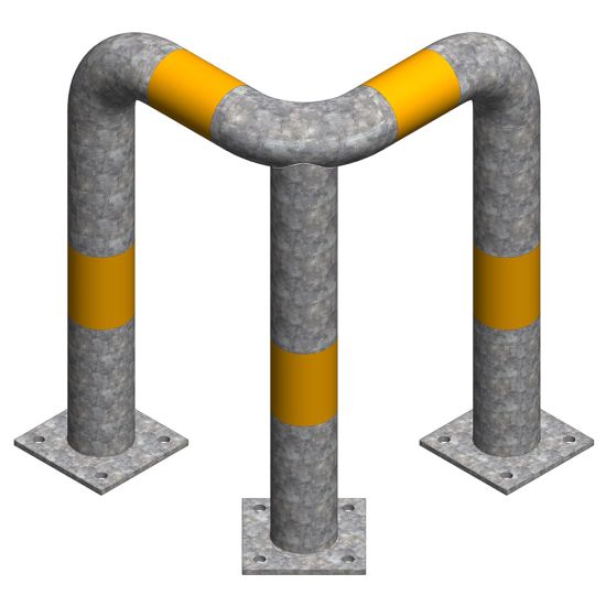 Protectie metalica pentru colt 800x800x400 mm din teava de 76.1x3 mm, zincata, benzi galbene reflectorizante