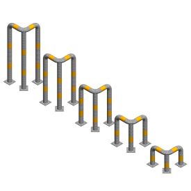 Protectie metalica pentru colt 800x800x600 mm din teava de 60.3x3 mm, zincata, benzi galbene reflectorizante
