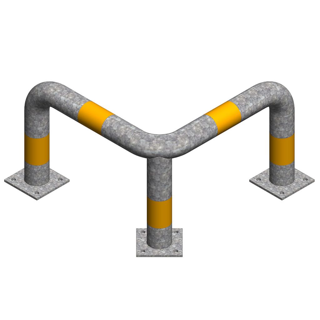 Protectie metalica pentru colt 800x800x400 mm din teava de 76.1x3 mm, zincata, benzi galbene reflectorizante