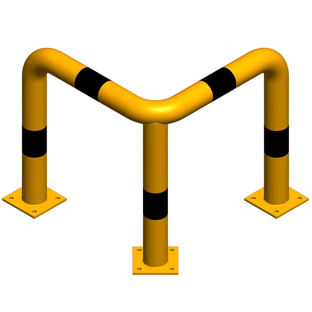 Protectie metalica pentru colt 800x800x400 mm din teava de 76.1x3 mm, zincata, benzi galbene reflectorizante