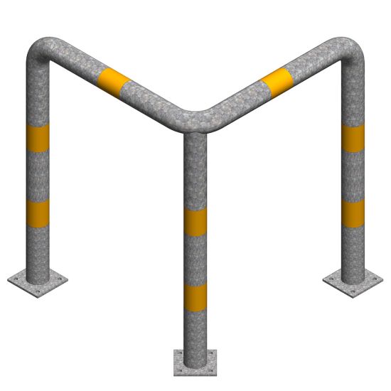 Protectie metalica pentru colt 800x800x400 mm din teava de 76.1x3 mm, zincata, benzi galbene reflectorizante