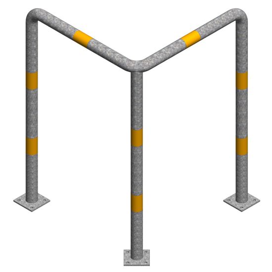 Protectie metalica pentru colt 800x800x600 mm din teava de 60.3x3 mm, zincata, benzi galbene reflectorizante