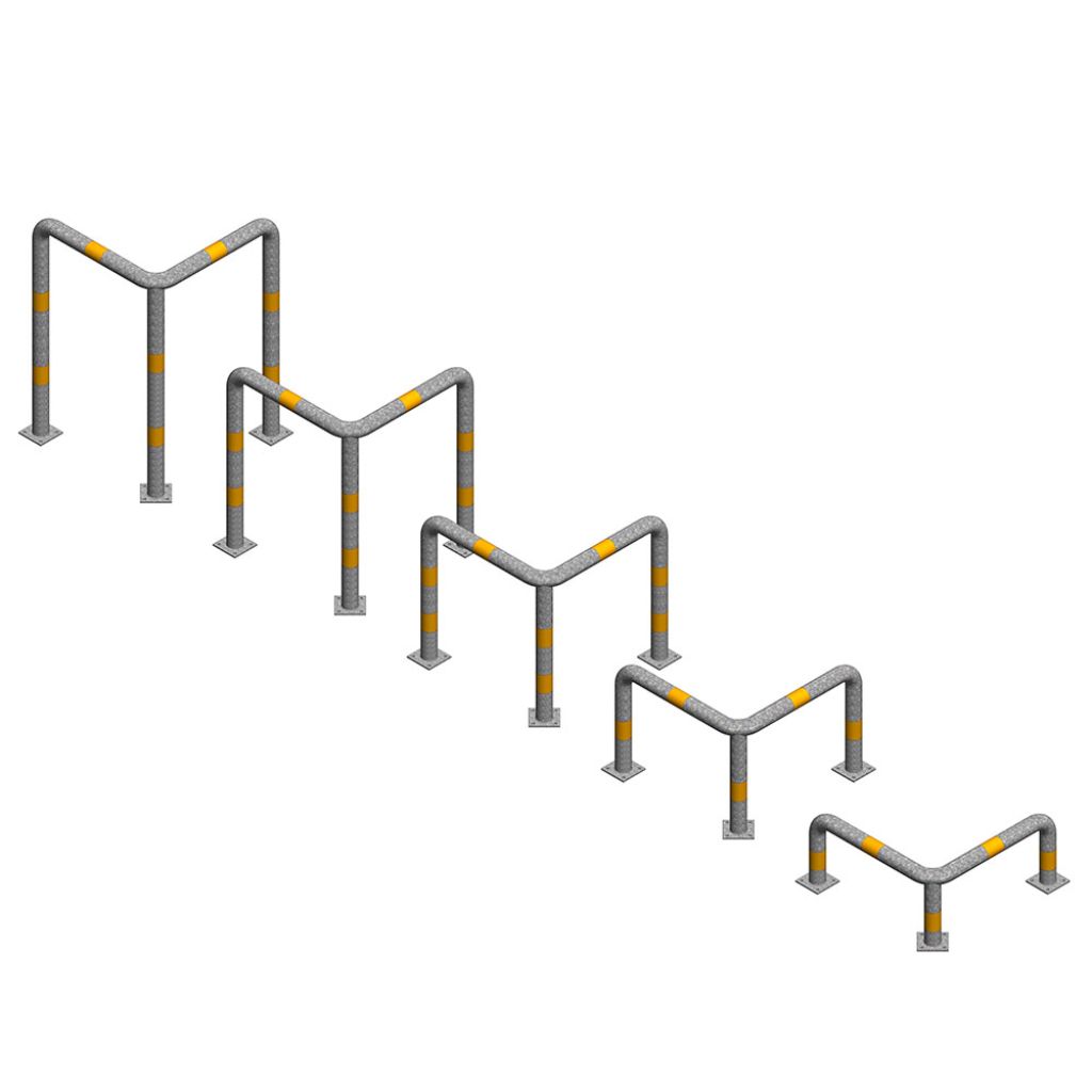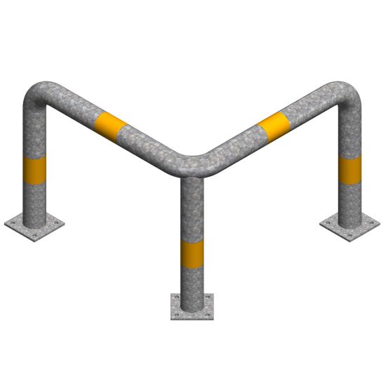 Protectie metalica pentru colt 800x800x400 mm din teava de 60.3x3 mm, zincata, benzi galbene reflectorizante