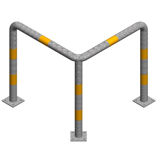Protectie metalica pentru colt 800x800x400 mm din teava de 76.1x3 mm, zincata, benzi galbene reflectorizante