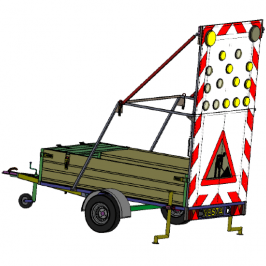 Când se lucrează la extinderea unei autostrăzi, evacuarea unor sectoare blocate sau semnalizarea de lucrări pe drumuri naționale, această remorcă asigură semnalizare conformă cu standardele actuale.