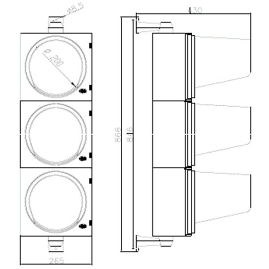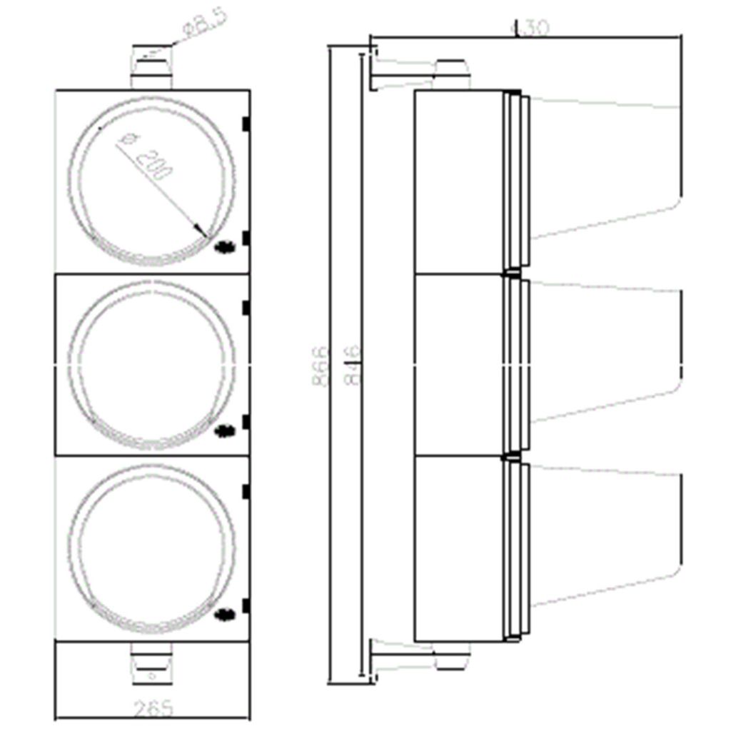 Diametrul suprafeței luminoase este Ø200 mm, ceea ce asigură o vizibilitate excelentă pentru conducătorii auto, inclusiv în condiții de lumină puternică sau ploaie.